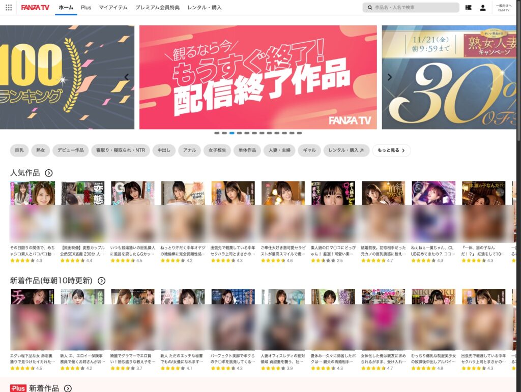 2. アダルト動画見放題のFANZA TVもDMMプレミアム会員特典!