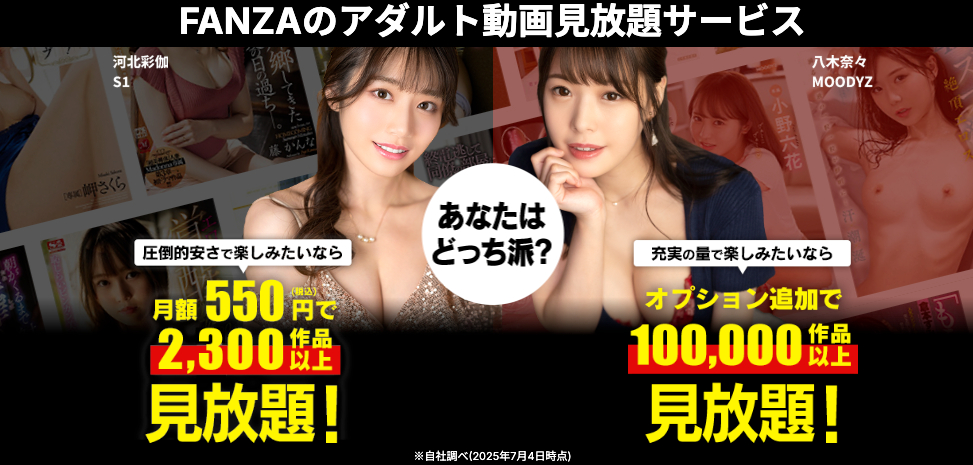 DMMが運営する国内最大級のアダルト動画配信サービス「FANZA動画」。FANZA動画でしか見れない独占コンテンツが100万作品以上あり業界シェアNo1をほこります。